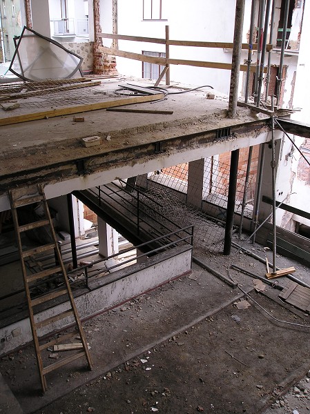 vybouraný strop nad balkonem sboru, prostor malého sálu sboru 22.9.2008