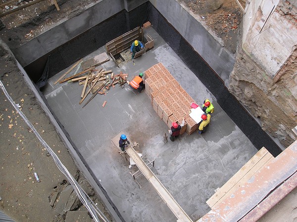 doprava cihel k vyzdění stěn prostoru sociálního zázemí Společenského centra sboru 9.10.2008