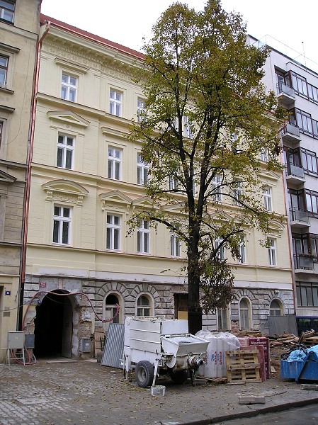 Popis: uliční stěna domu již má novou fasádu