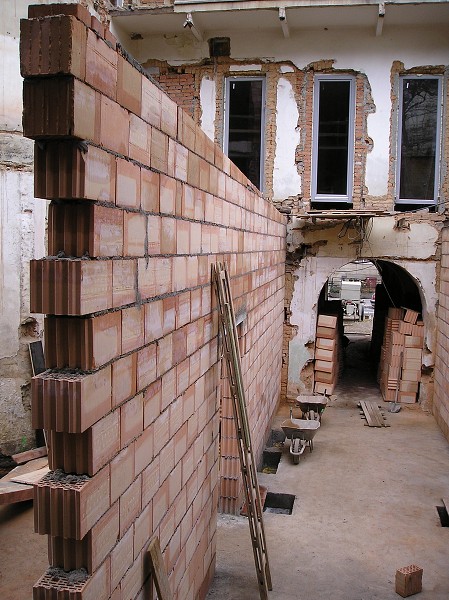 Popis: staví se příčka atria a budoucí šatny sboru