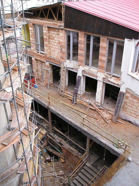 stavební práce na čelní - západní - stěně sboru a ochozu atria 25.11.2008
