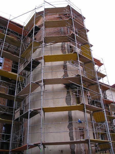 stavební práce na fasádě schodiště domu 25.11.2008