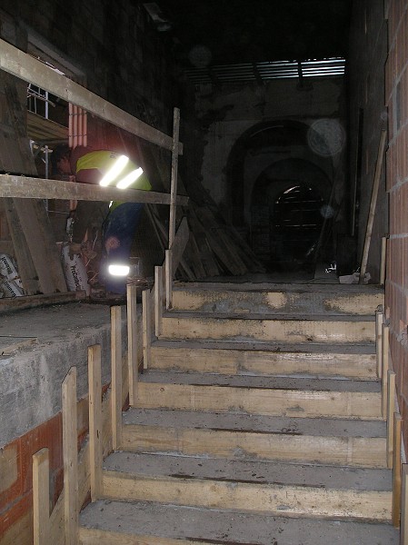 schodiště z místnosti sociálního zázemí sboru do prostoru chodby a šatny v 1.NP sboru 8.12.2008