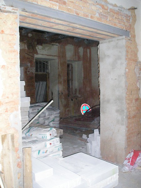 průhled z malého sálu sboru do prostoru budoucí kuchyně 28. ledna 2009 14:23:17