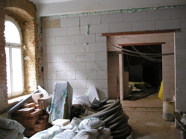 průhled z pravé - sborové - části Společenského centra do čajovny v levé části SC - čajovny 25. února 2009 15:47:43