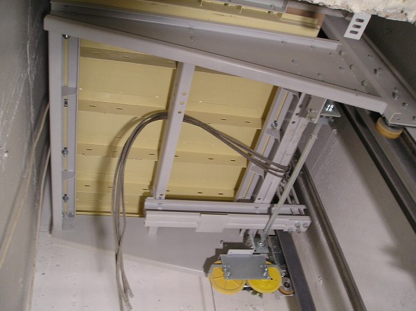 podlaha výtahové kabiny při zkušebních jízdách 16.3.2009