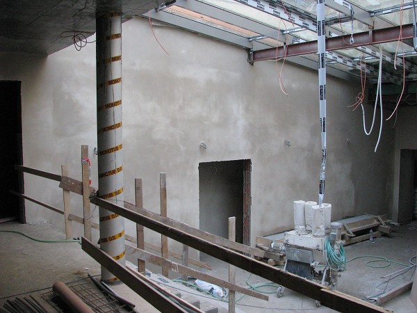 boční stěna atria sboru, průchod do skladu traktátu a dál do kuchyně sboru 24.3.2009