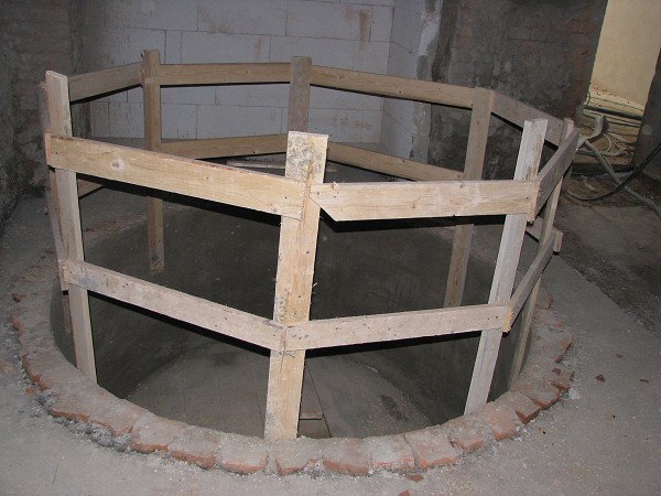 přípravy před osazení konstrukce točitého schodiště do 1.PP Společenského centra sboru 1.4.2009