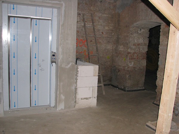 nejnižší stanice výtahu domu - spodní patřo Společenského centra sboru 1.4.2009