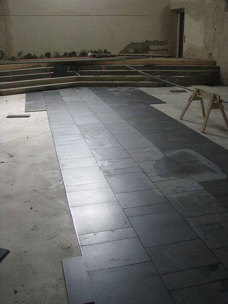pokládka keramické dlažby v sále modlitebny 14.4.2009