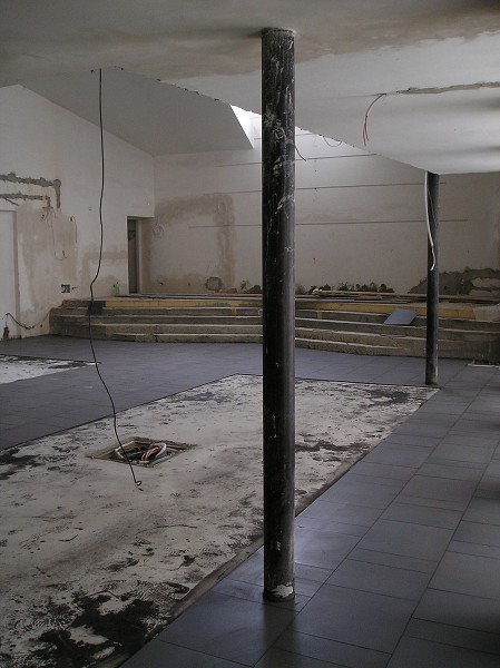pokládka dlažby v sále modlitebny sboru 17.4.2009