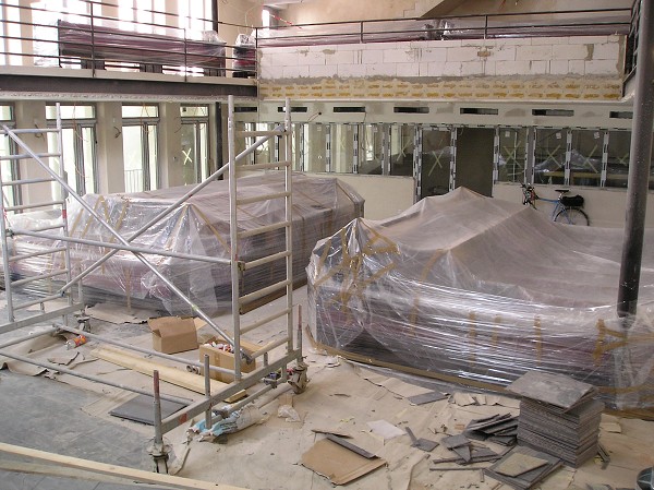 lavice sálu modlitebny sboru v igelitových balíčcích 17.5.2009
