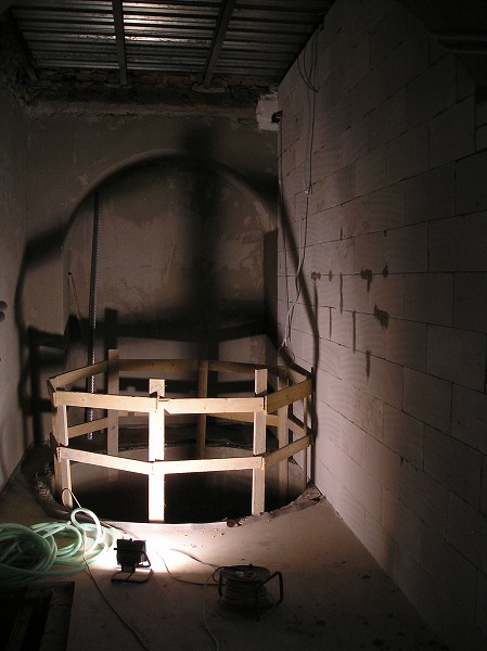 prostor čajovny před osazením kovové konstrukce točitého schodiště z čajovny do sklepního sálu Společenského centra sboru 26.5.2009