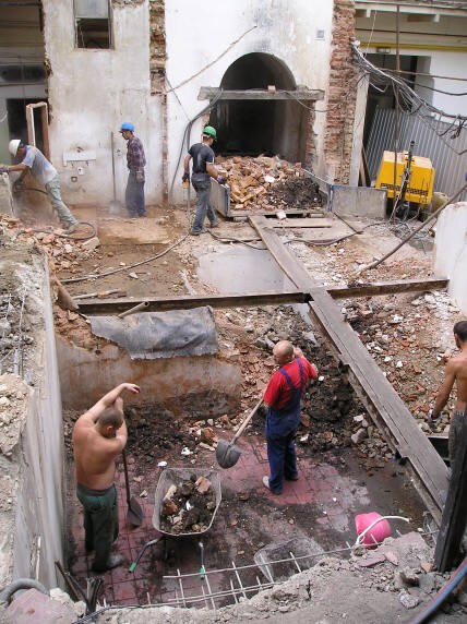 výkopové práce zázemí Společenského centra 24.6.2008