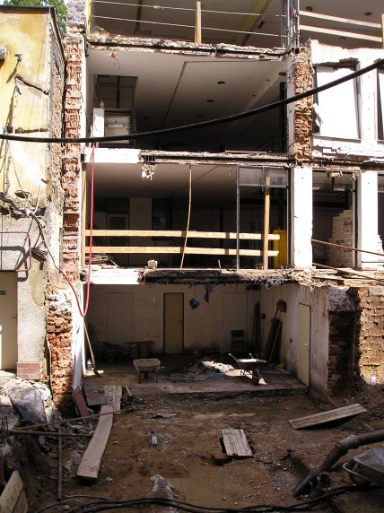 pohled do jednotlivých pater sbor po odstranění čelní jižní stěny 4.7.2008