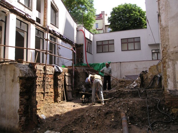 výkopové práce v prostoru budoucího atria sboru 4.7.2008