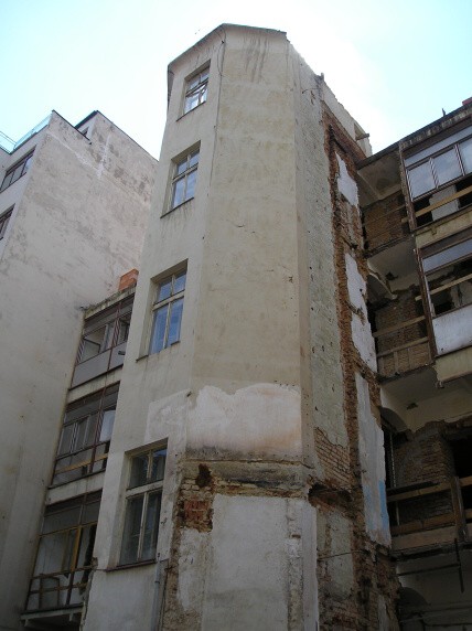 schodiště domu po odstranění bočních přístaveb 4.7.2008