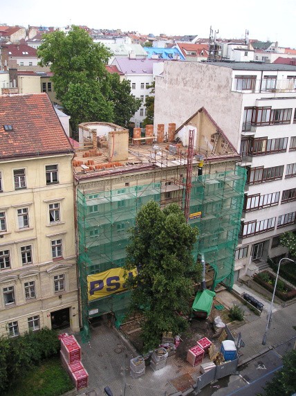 "obnažený" dům, pohled ze střechy protější budovy 4.7.2008