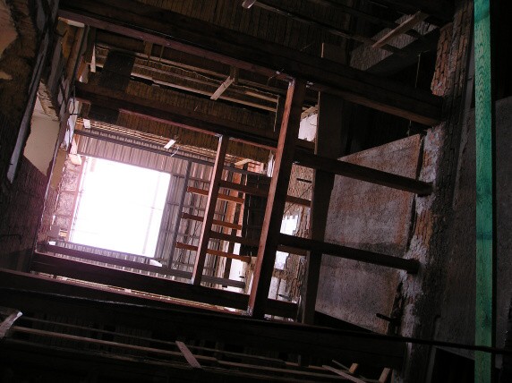 dřevěné konstrukce v prostoru budoucí výtahové šachty domu 8.8.2008